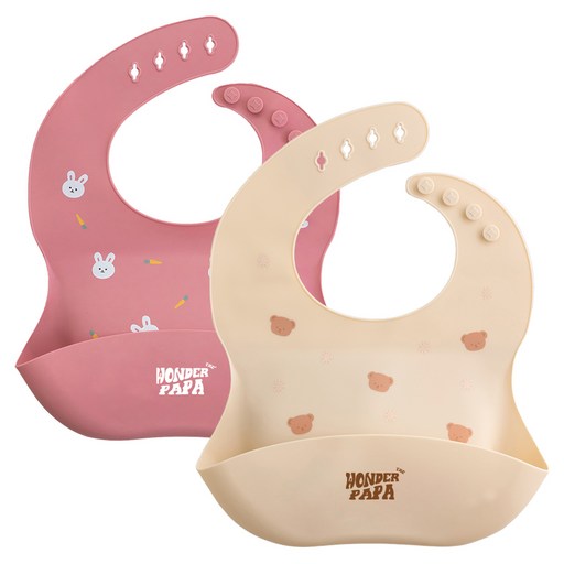 원더파파 아기 실리콘 방수 이유식 턱받이 2종 세트